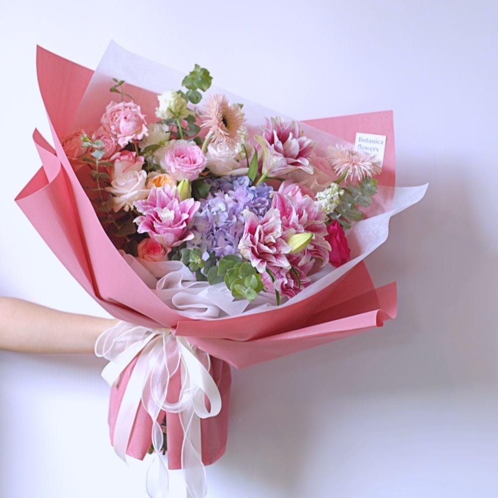 Gợi ý: Bó lily trắng tinh khôi, lẵng lily hồng pastel dịu ngọt, bình hoa lily mix cùng lá xanh tươi mát.
