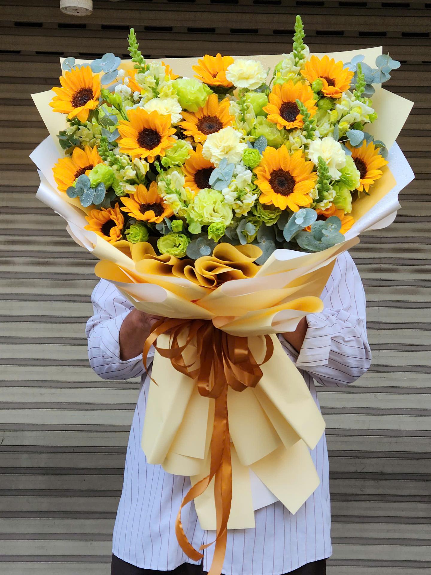 Gợi ý: Bó hướng dương đơn giản mà nổi bật, lẵng hướng dương kết hợp các loại hoa lá độc đáo, bình hoa hướng dương để bàn xinh xắn.