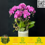 Chậu lan hồ điệp Hồng Địa Chủ 5 cành mang ý nghĩa “Phú Quý Hội Tụ – Ngũ Phúc Lâm Môn”.