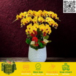 Chậu lan hồ điệp vàng nhụy đỏ 9 cành mang ý nghĩa “Phú Quý Vĩnh Cửu – Uy Quyền Đỉnh Cao”.