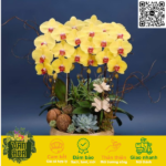 Chậu lan hồ điệp vàng 3 cành kết hợp sen đá mang ý nghĩa “Thịnh Vượng Sang Trọng – Nền Tảng Bền Vững”.